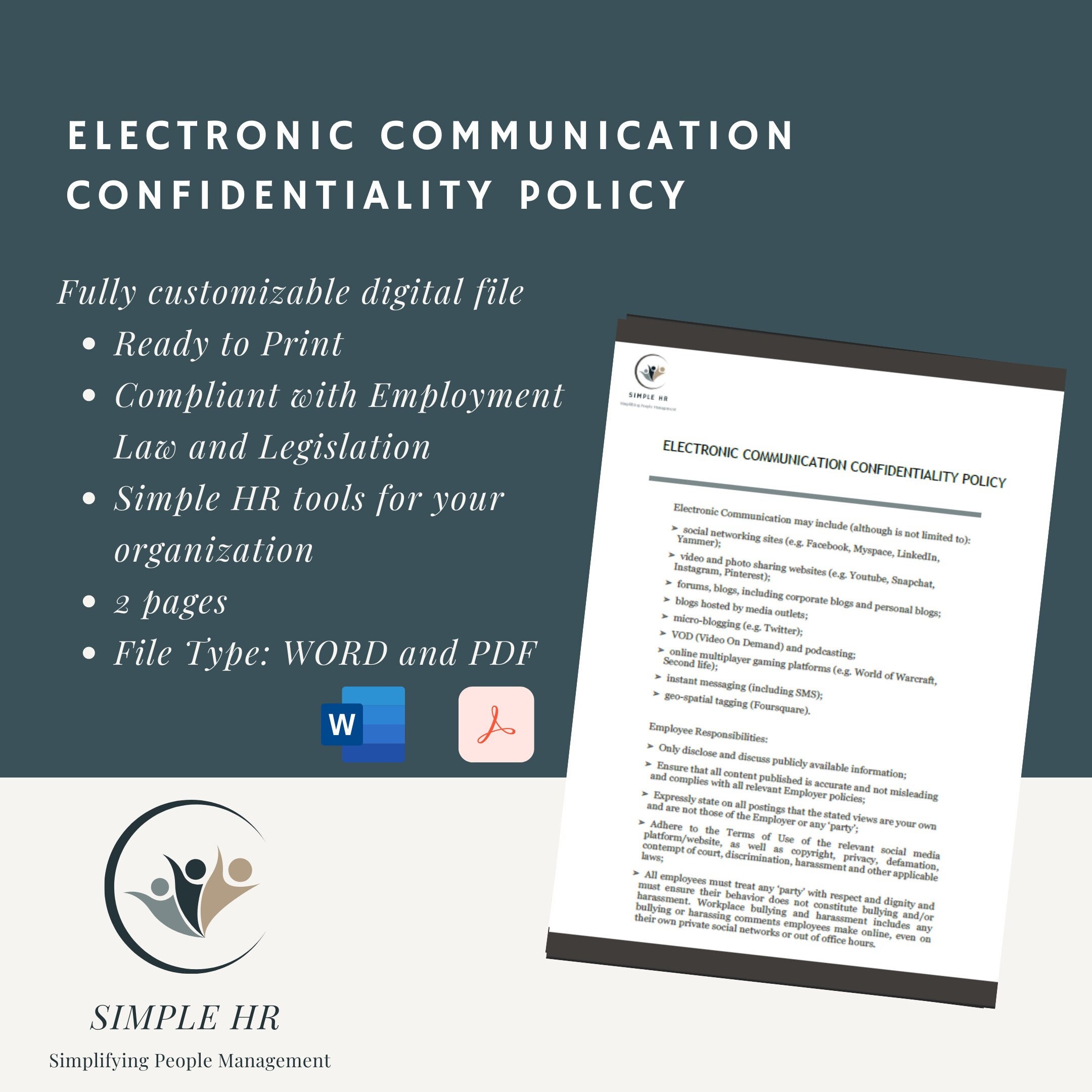 Be the first to review “Electronic Communication Confidentiality Policy| Editable Word Template| Human Resources | HR Tools and Templates”