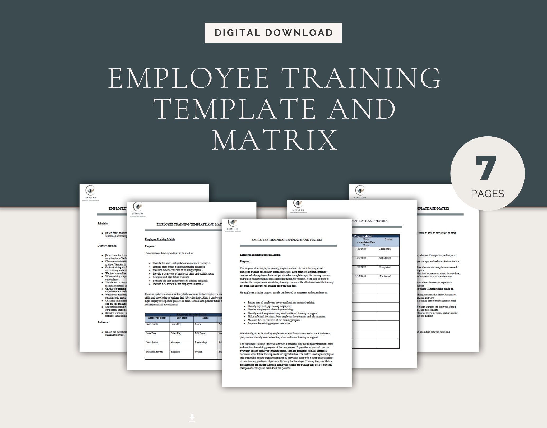 5 pages (Guide, Training Template, Training Matrix, Skills Matrix)