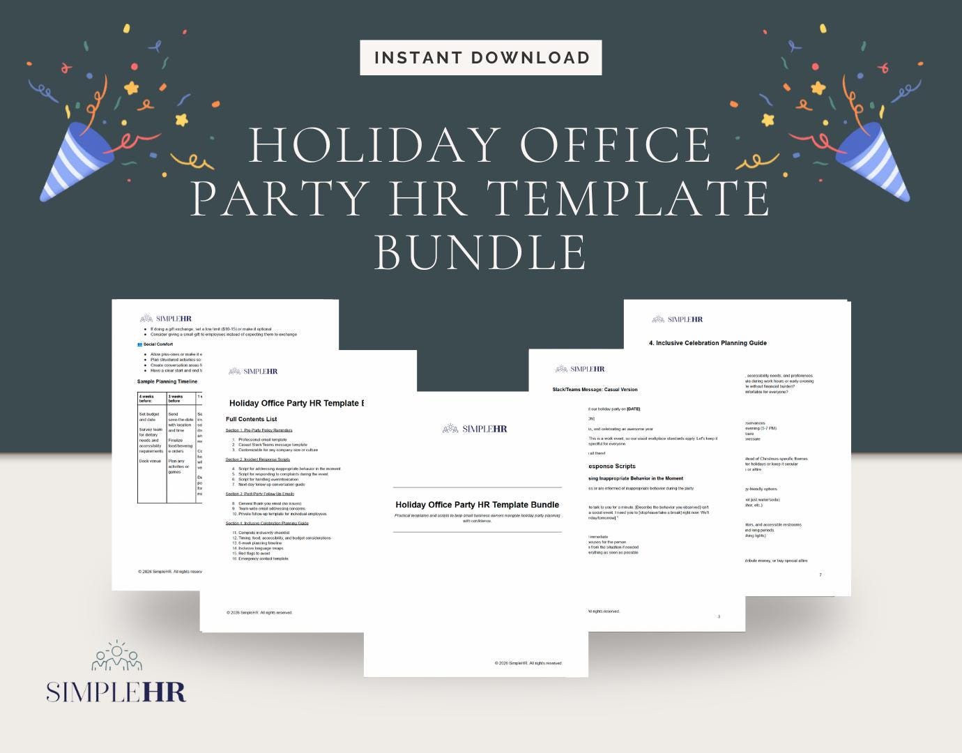 This comprehensive HR template bundle gives you everything you need to plan a professional, inclusive, and legally sound company holiday celebration—with ready-to-use scripts, emails, and checklists you can customize in minutes.